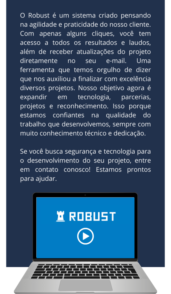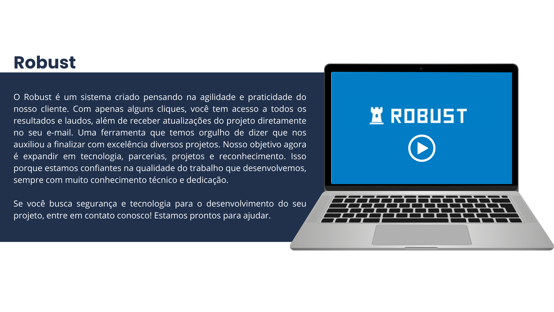 Contamos com um sistema chamado Robust, criado e desenvolvido pensando em agilidade e praticidade do nosso cliente. Com poucos cliques o cliente tem acesso ao todos os resultados e laudos, além de notificações via e-mail para resultados abaixo do esperado.
